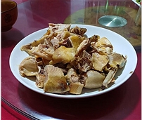 農(nóng)家菜有:開化小青螄、筍干燉豬肉、白切雞、小龍蝦、朱熹白臘肉、五婆強(qiáng)盜炒、芹江長者蝦、錢江源山珍、衢州鴨頭、清水魚、馬金豆腐干、天子喜炊粉等。